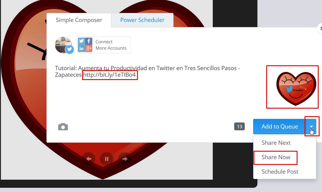 Publica tuits enriquecidos con fotos y el enlace del artículo acortado con un solo click